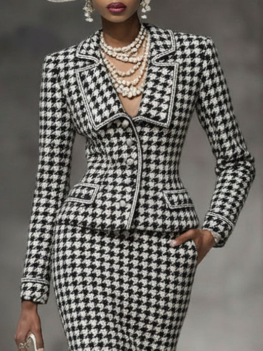 Élégant Ensemble Blazer et Jupe en Houndstooth