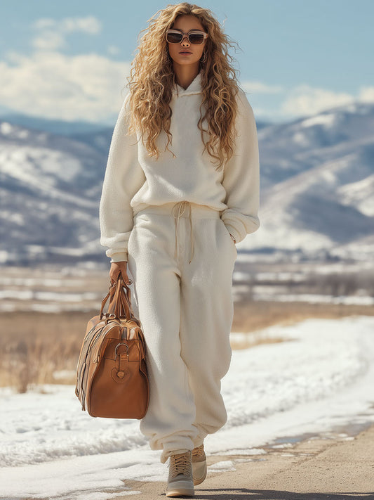 Ensemble Sportif Rétro : Sweat à Capuche en Polaire Blanche