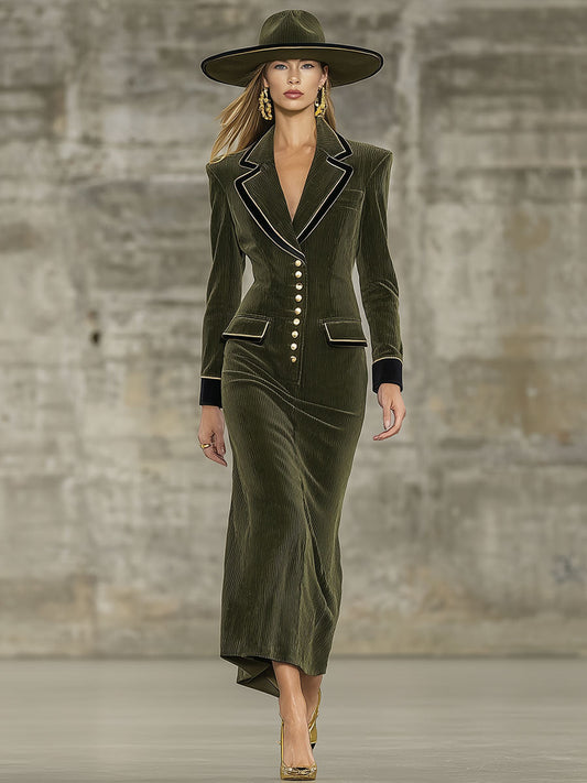 Veste en Velours Vert Éclatante avec Détails en Toile Dorée