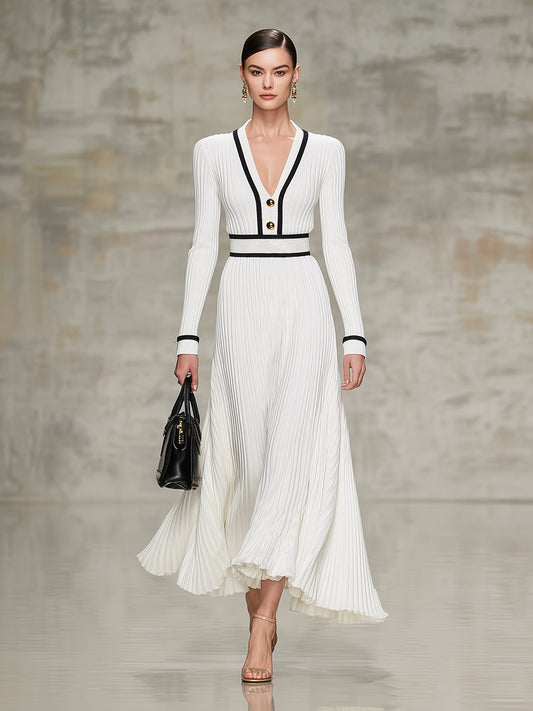 Chic Robe Maxi Noire en Tricot avec Jupe Évasée