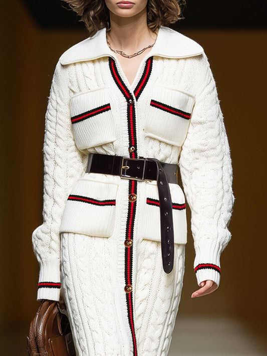 Chic Grand Cardigan Tricoté à Col Large avec Poches Pratiques et Ceinture Élégante
