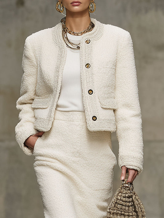 Ensemble Polaire Chic : Veste à Col Rond et Jupe Coordonnée