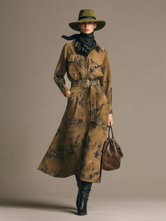 Robe Maxi Camouflage en Suédine avec Col Zippé - Élégance Sportive Rétro