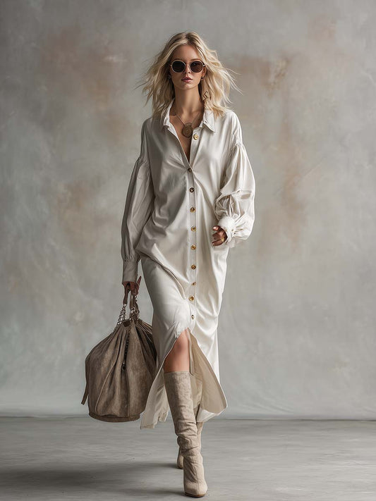 Robe Maxi Blanche Rétro à Manches Longues - Élégance Intemporelle