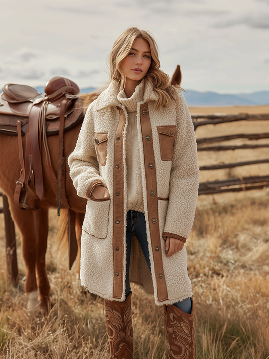 Veste Sherpa Vintage à Col Revers de Style Western