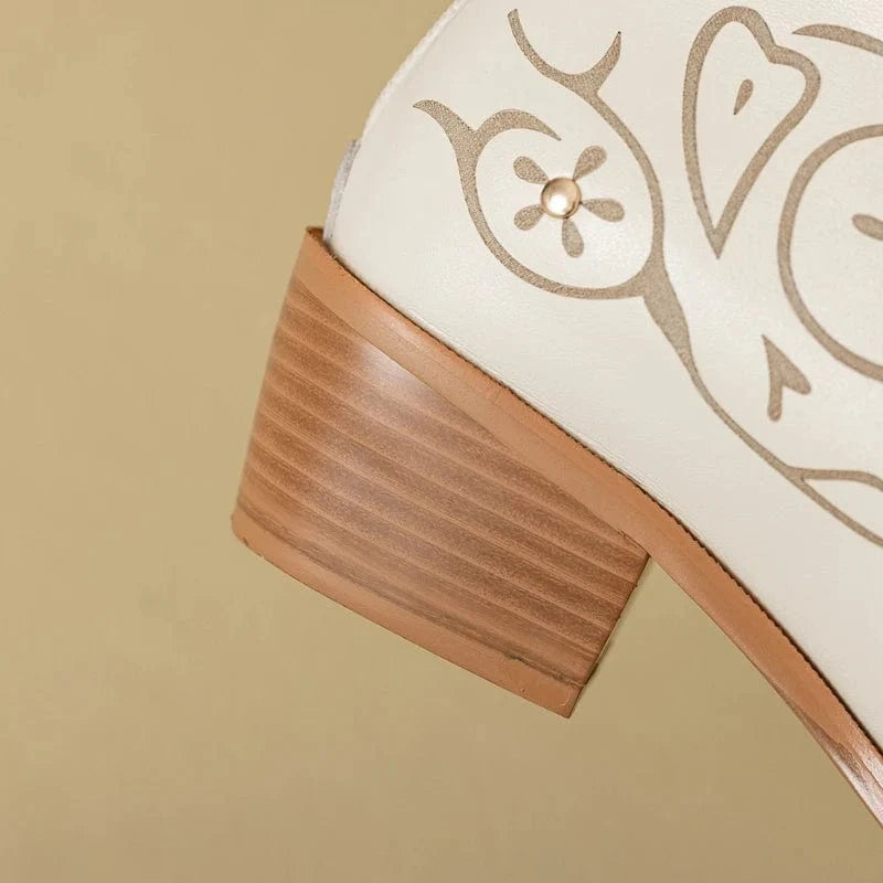 Évoquant l'esprit du Far West, ces bottines en cuir véritable allient élégance et authenticité. Leur design épuré et leurs motifs délicats vous transporteront vers des paysages ensoleillés, tout en restant ancrées dans la tendance Western chic.