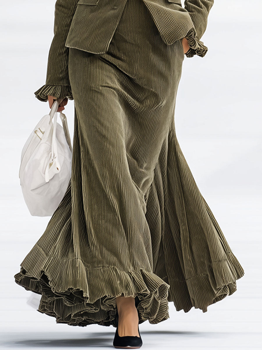 Élevez votre style avec notre Ensemble Blazer à Revers Simple et Jupe à Manches Volantes. Conçu pour la femme moderne qui apprécie l'« effort chic », cet ensemble incarne une élégance subtile inspirée par l'esthétique Western.