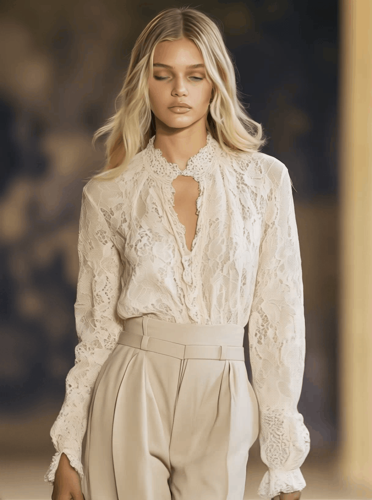 • Design : Manches longues, délicate dentelle et découpes raffinées.