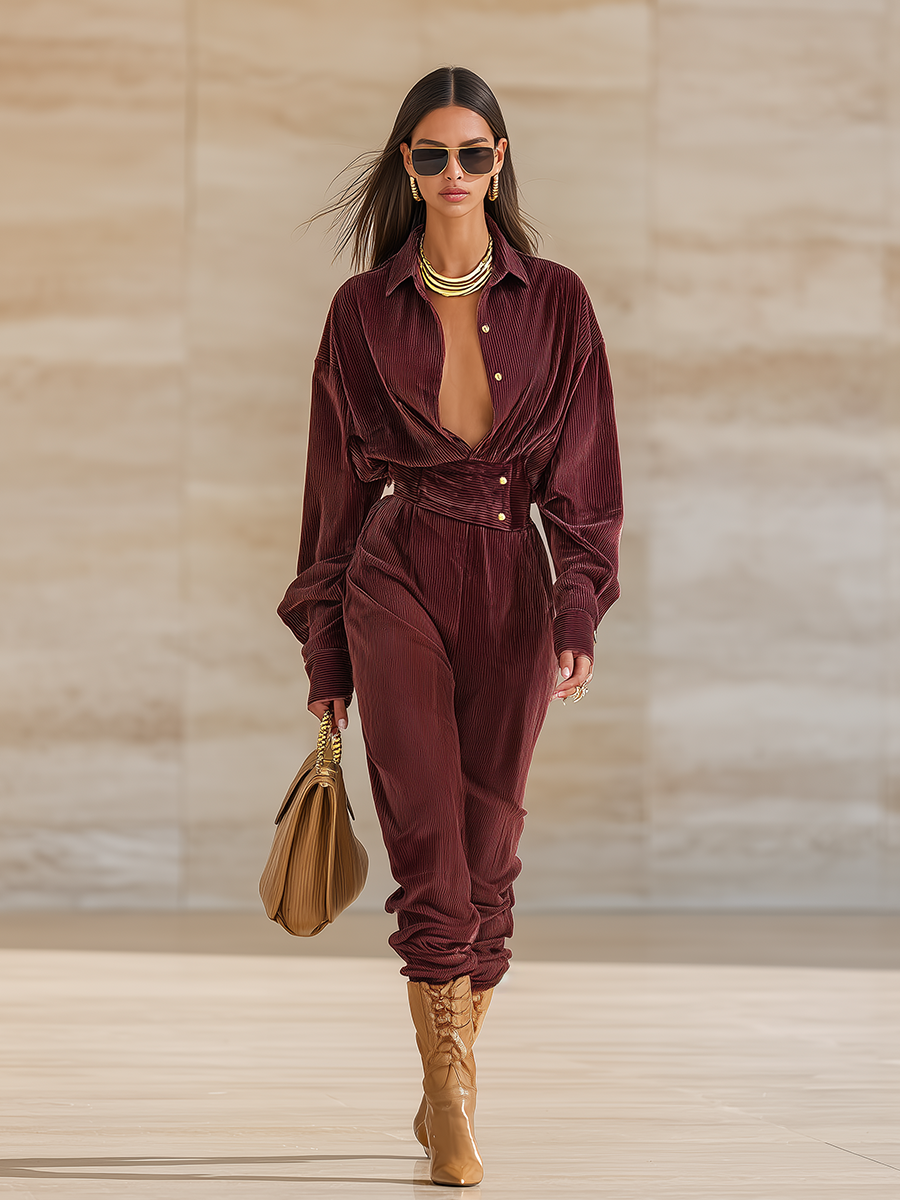 Découvrez notre combinaison en velours côtelétissu en velours côtelé texturé de haute qualité, elle incarne l’esprit chic et intemporel que vous recherchez.