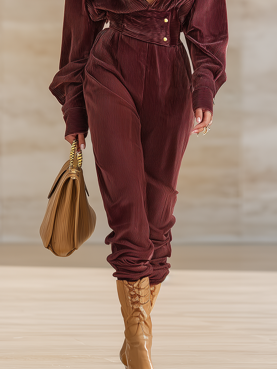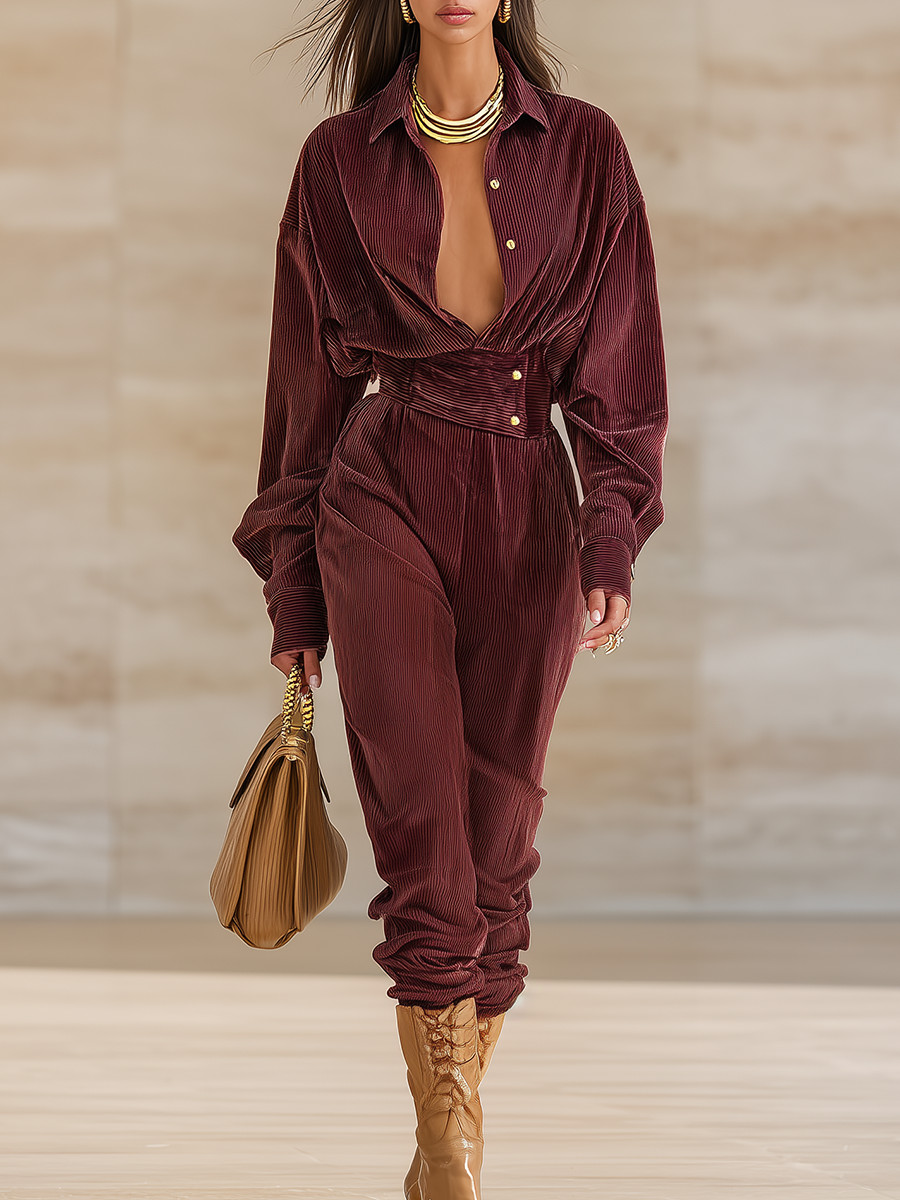 Chic Combinaison en Velours Côtelé à Manches Longues