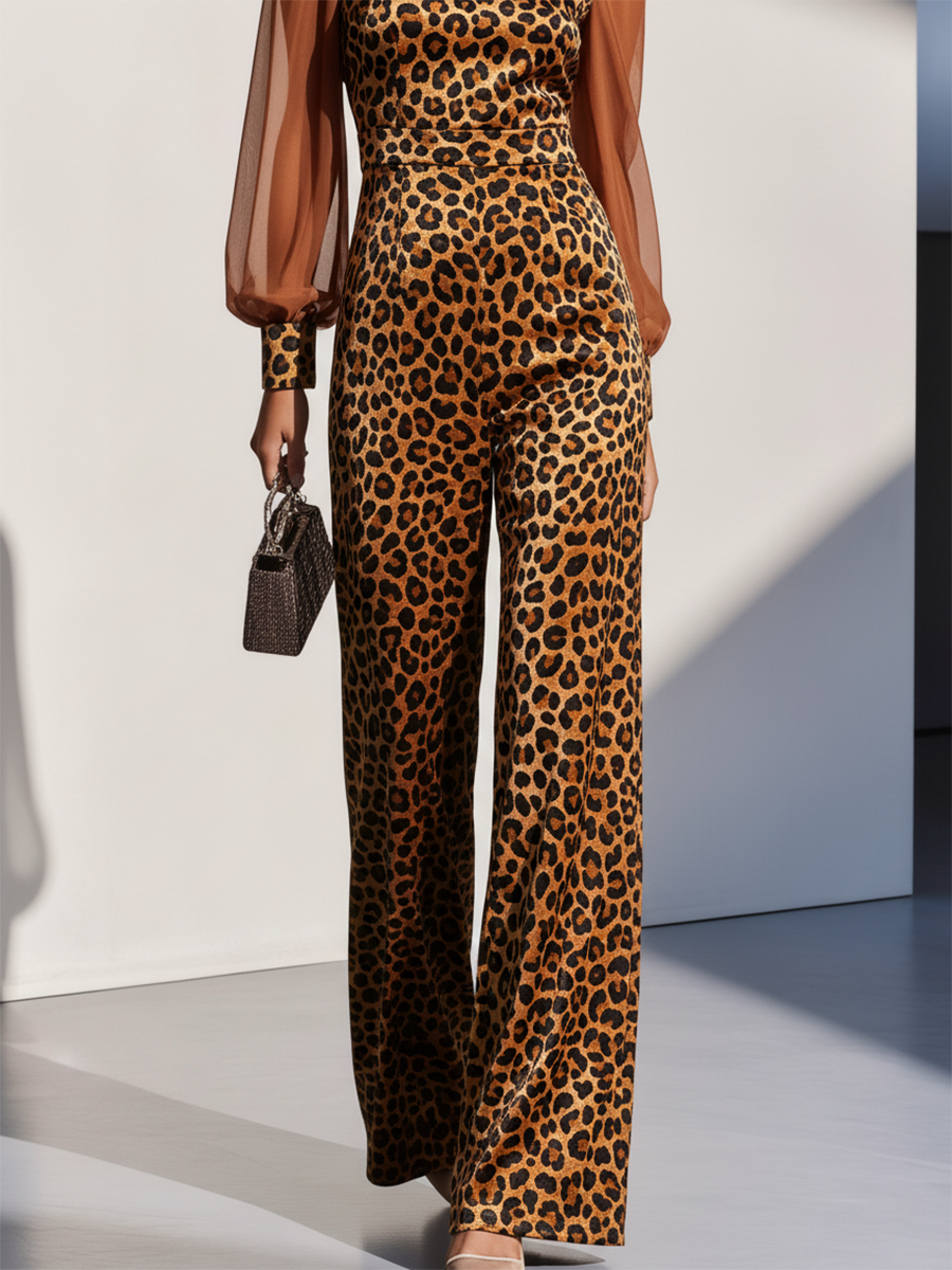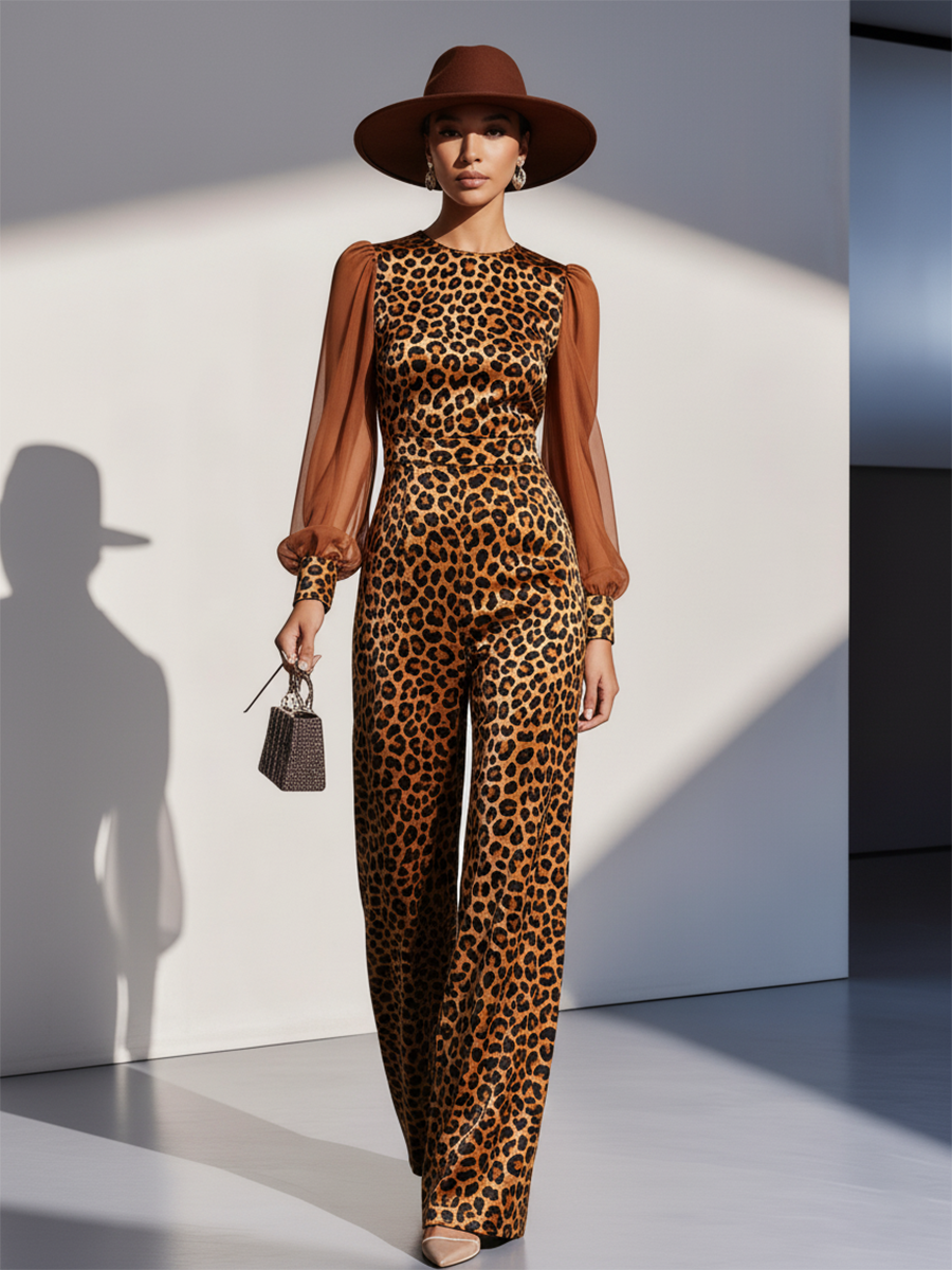 • Design : Col rond, manches ballon en organza, avec un imprimé léopard vintage pour une touche audacieuse.