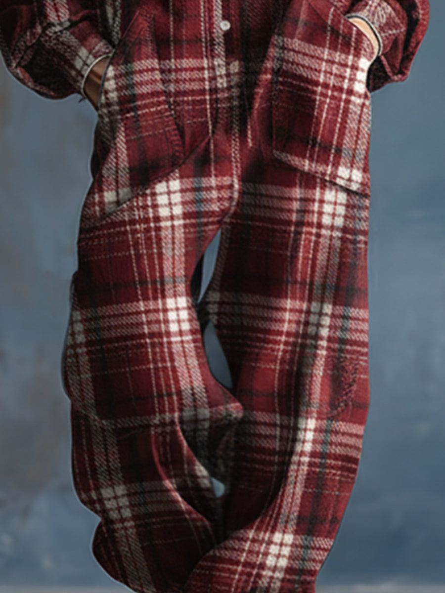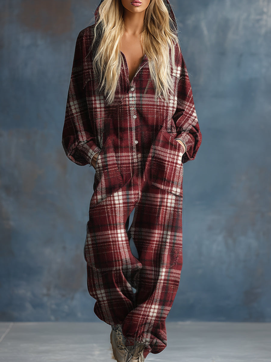 Combinaison Rétro à Carreaux Rouges avec Capuche et Boutons