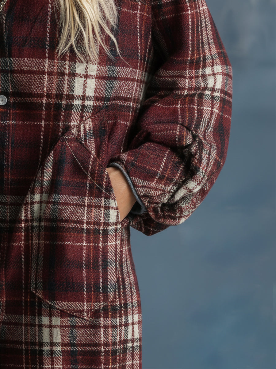 Découvrez la combinaison à boutons à carreaux rouges de Saint-Texane, une pièce emblématique qui incarne l'élégance décontractée tout en s'inspirant des tendances Western. Fabriquée en tissu en laine de haute qualité, elle vous enveloppe de chaleur et de confort, parfaite pour les journées fraîches.