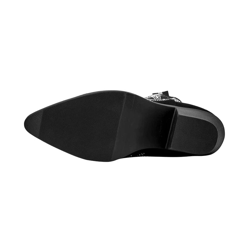 Enflammez la piste avec élégance grâce à nos santiags de danse, une fusion parfaite entre l'esprit du Far West et le chic contemporain. Conçues en cuir velours et ornées de diamants scintillants, ces bottes attirent tous les regards à chaque pas.