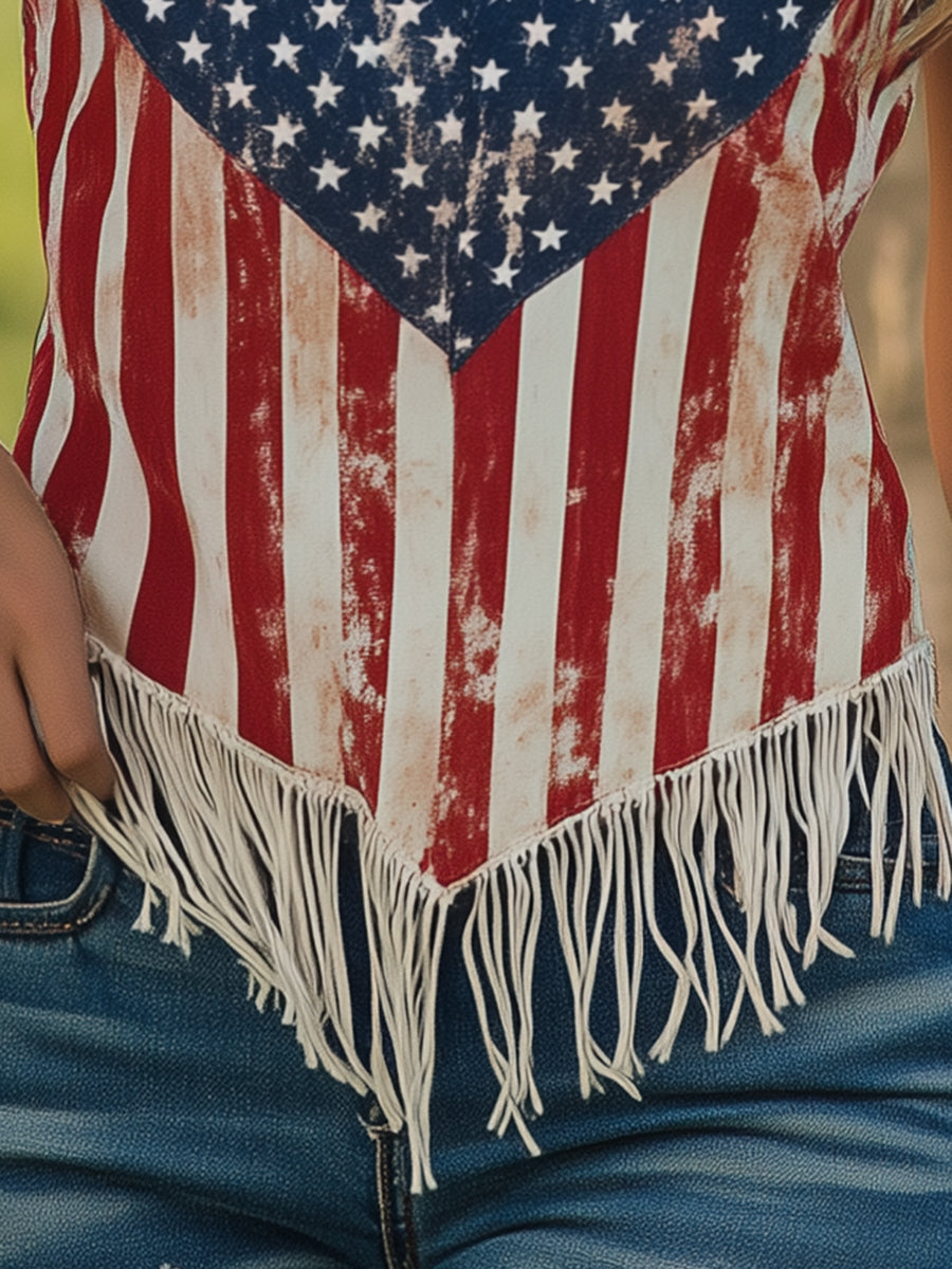 Débardeur Spaghetti Vintage avec Ourlet Frangé - Expédition en 24 Heures !