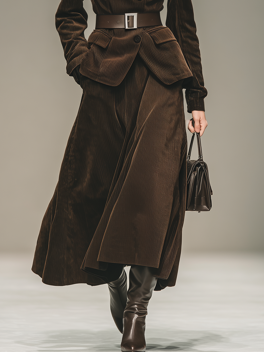 Ensemble Élégant en Velours Côtelé : Blazer et Jupe au Style Western Vintage