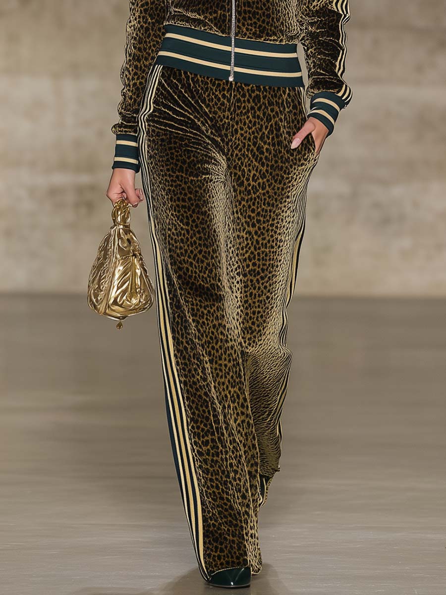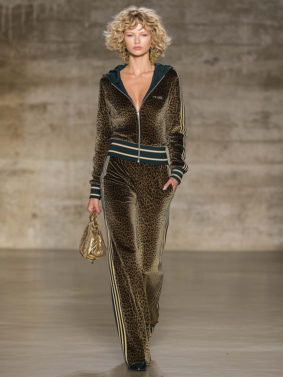 Ensemble Sportif en Velours Vert à Imprimé Léopard : Élégance et Confort