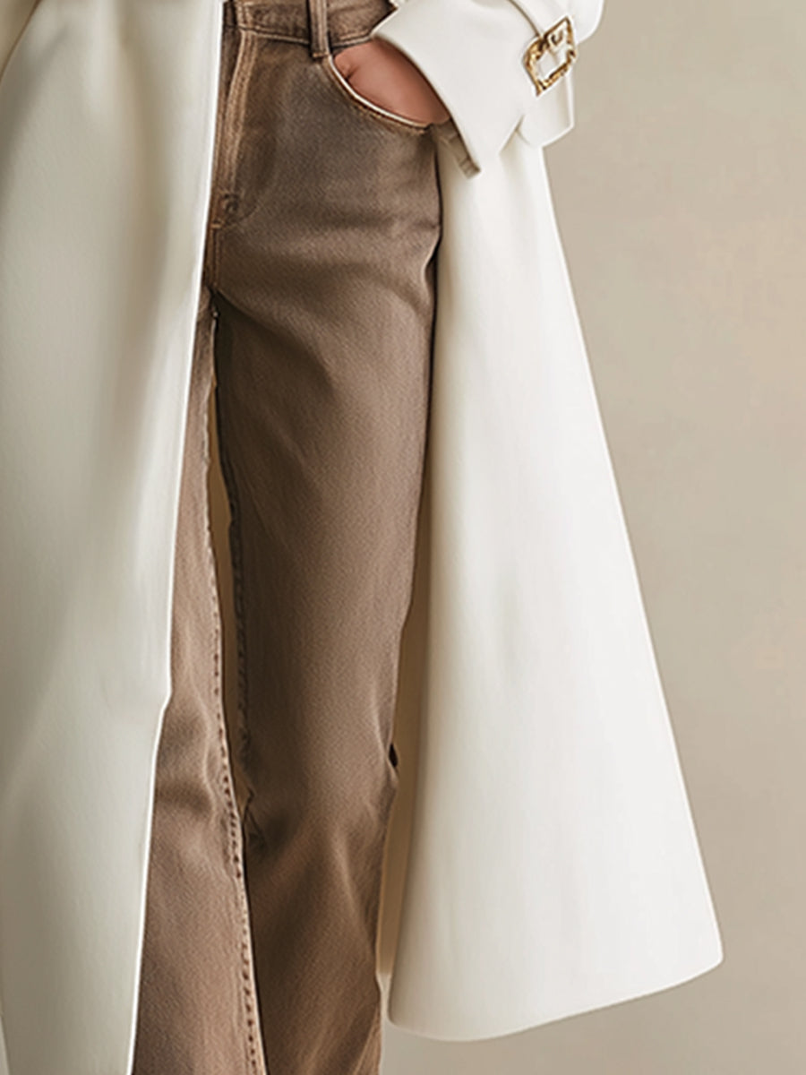 Long Crème en Laine avec Col en Fourrure Léopard : Élégance Urbaine