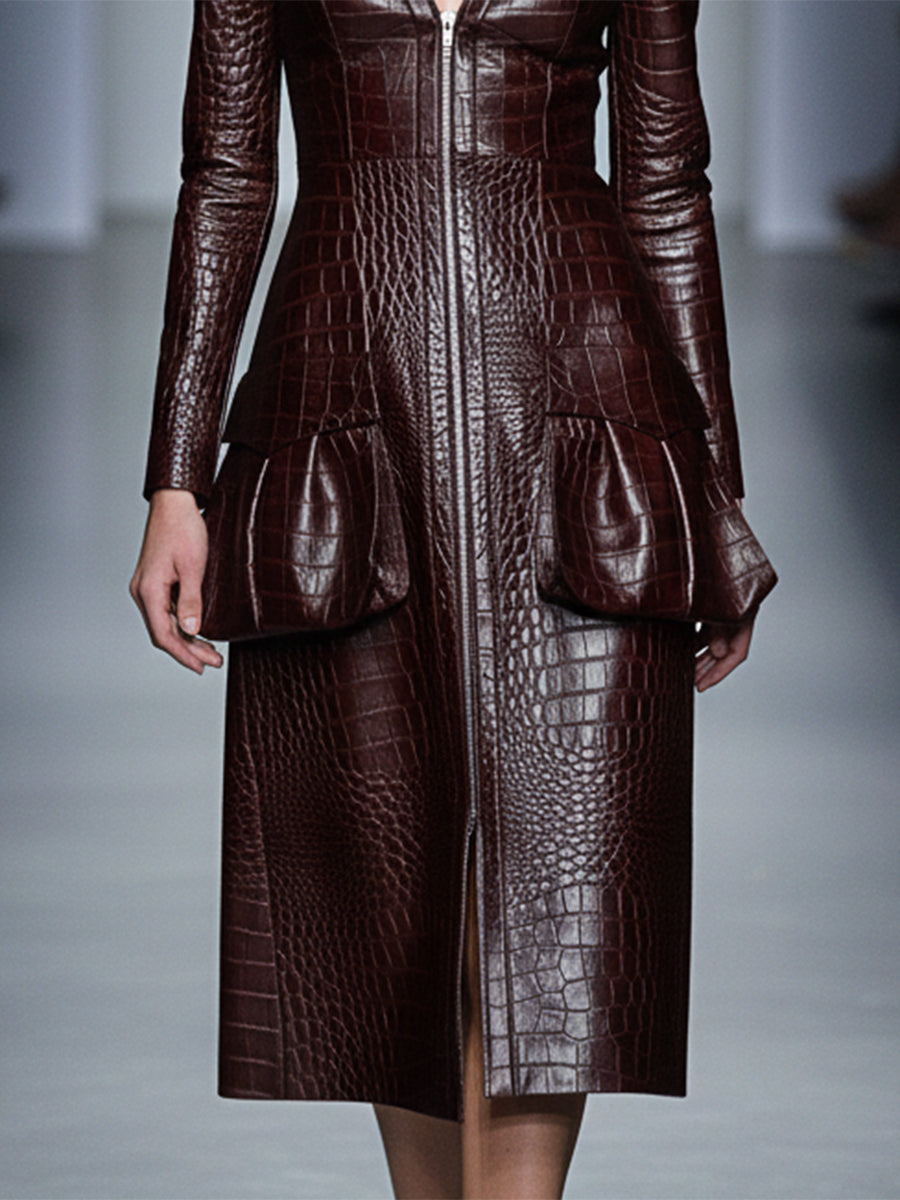 Découvrez la robe midi Saint-Texane, un chef-d'œuvre de l'élégance moderne qui marie subtilement le chic européen à l'esprit cowboy. Confectionnée en cuir PU à effet crocodile, cette pièce est à la fois respectueuse de l'environnement et d'une sophistication indéniable.