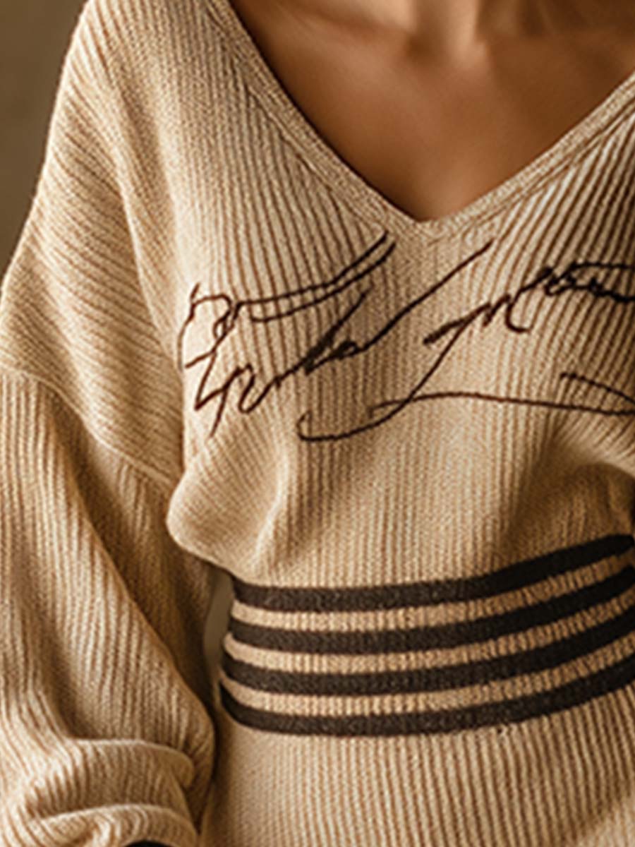 • Design : Décolleté en V, bordure rayée et monogramme signature.