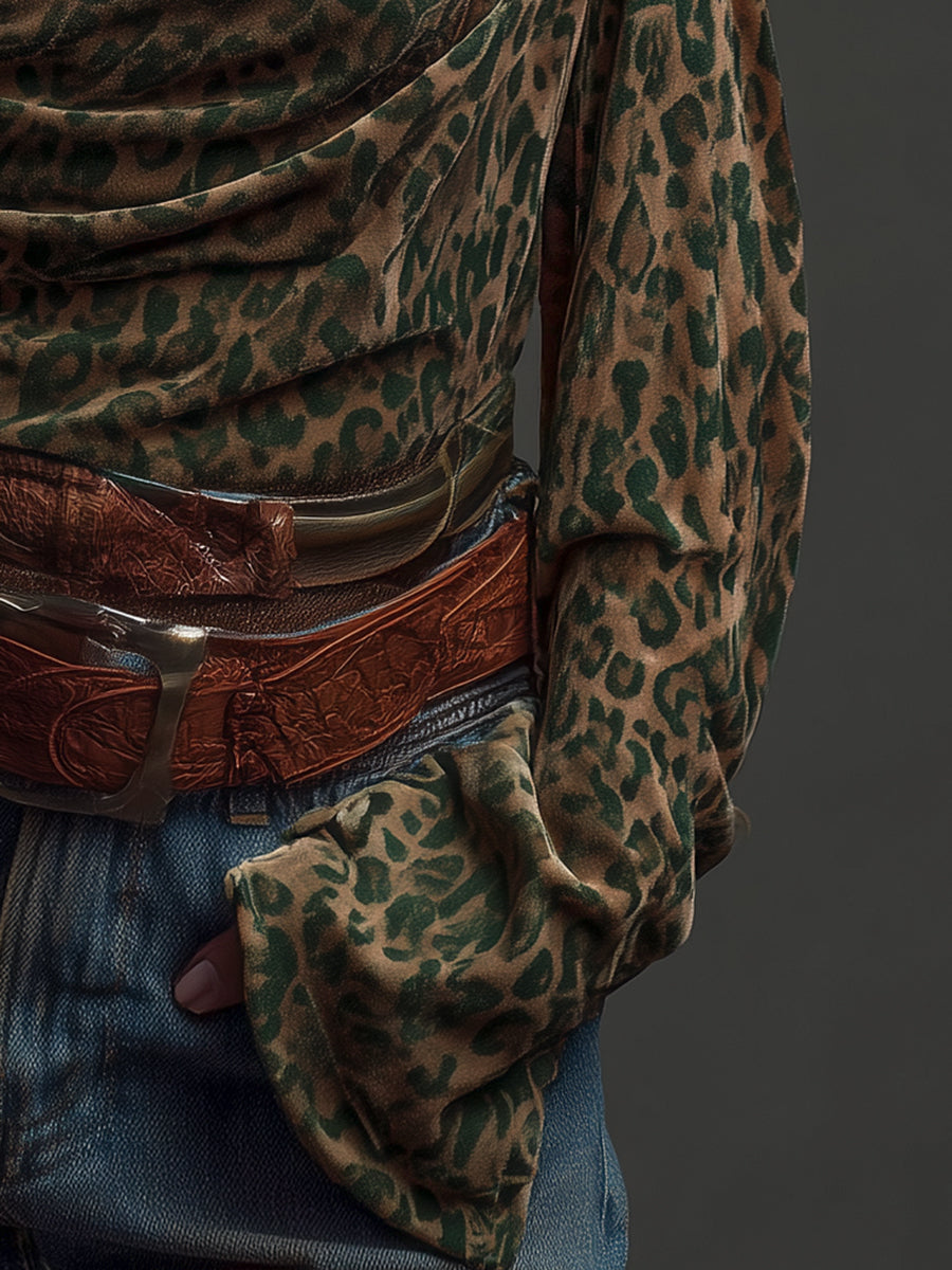 Top en Velours Imprimé à Une Épaule avec Décolleté Drapé - Élégance Haut de Gamme à Porter de Deux Façons