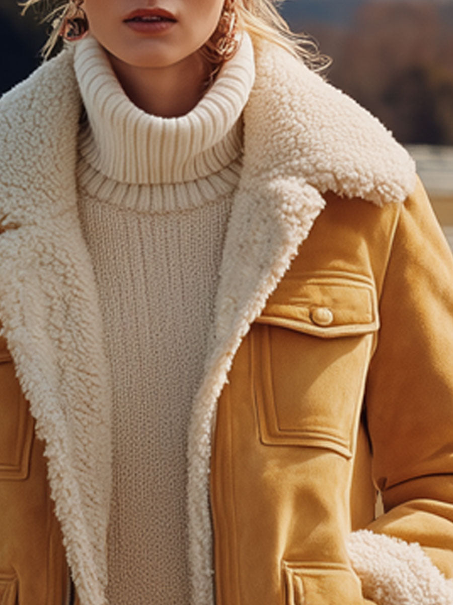 Manteau Veste Multi-Poches en Suédine Jaune Doublé en Polaire Vintage Western : un mélange captivant de style et de praticité qui illuminera votre garde-robe.